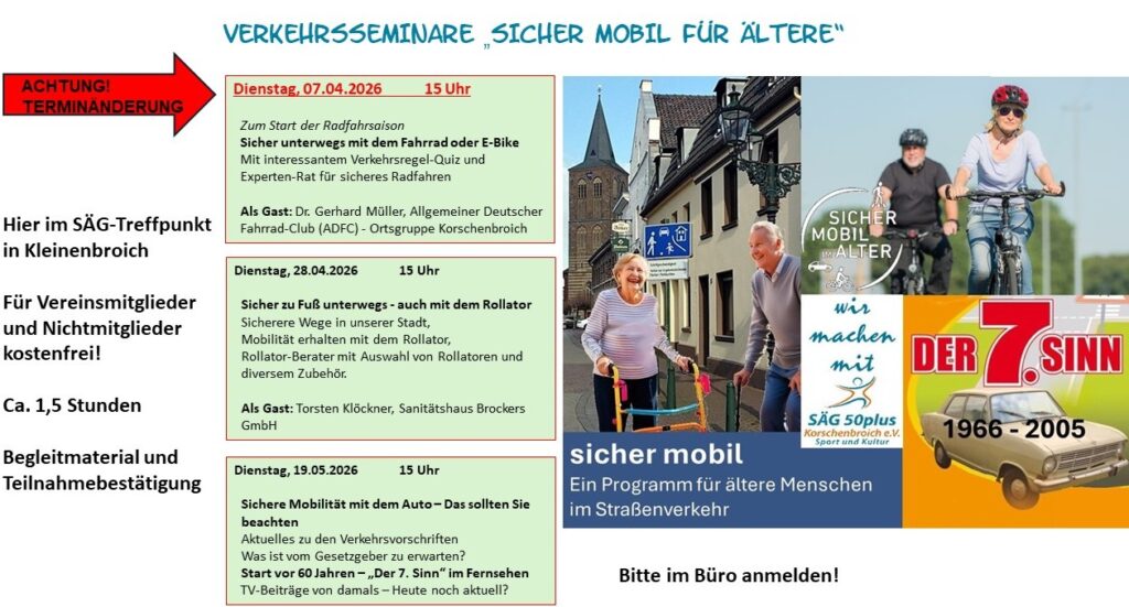 Unser Verein SÄG 50plus bietet Berufstätigen über 50 Jahren und Menschen, die bereits im Ruhestand sind, attraktive sportliche, gesundheitsfördernde, kulturelle und touristische Aktivitäten zur Freizeitgestaltung: